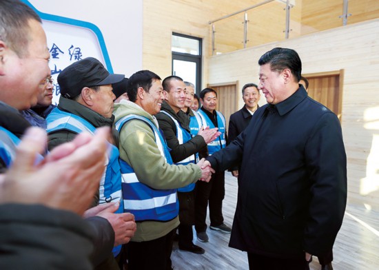 2019年1月16日至18日,中共中央总书记、国家主席、中央军委主席习近平在京津冀考察,主持召开京津冀协同发展座谈会并发表重要讲话。这是1月16日下午,习近平在河北雄安新区“千年秀林”大清河片林一区造林区域秀林驿站,同参与造林护林的村民亲切握手。 新华社记者 鞠鹏/摄