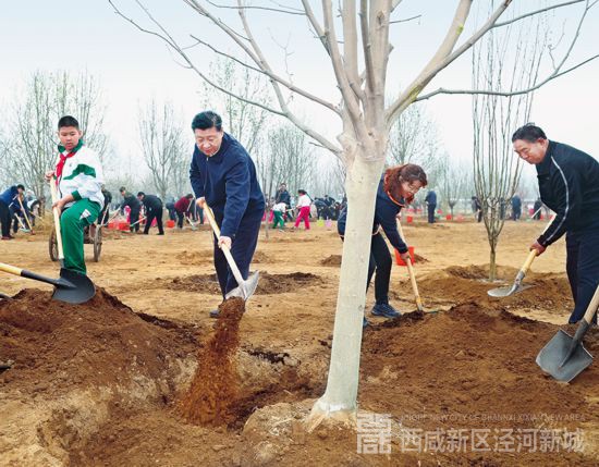 2018年4月2日,党和国家领导人习近平、李克强、栗战书、汪洋、王沪宁、赵乐际、韩正、王岐山等来到北京市通州区张家湾镇参加首都义务植树活动。这是习近平同大家一起植树。 新华社记者 谢环驰/摄