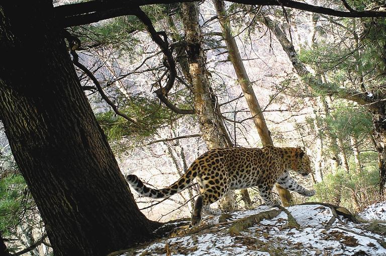 大熊猫国家公园周至管理分局红外相机此前拍到的金钱豹。 (受访单位供图)