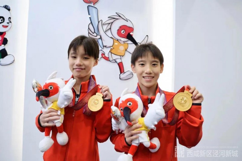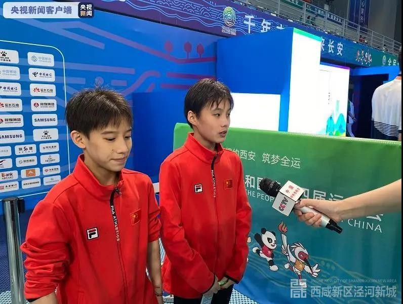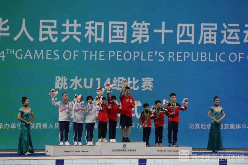 7月12日,中华人民共和国第十四届运动会竞技项目跳水U14组比赛在位于西安国际港务区的西安奥体中心游泳跳水馆举行。共有来自全国17个省、自治区、直辖市的代表队为争夺首金展开激烈角逐,最终在跳水U14组比赛女子双人跳台项目中,江苏队阮莉俪/吴心怡摘得十四运会竞技项目的首枚金牌。