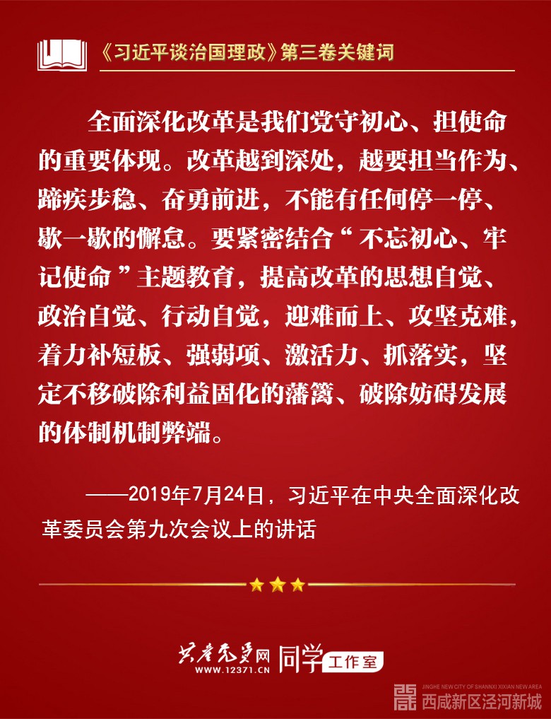 我们梳理习近平总书记部分讲话,带你学习著作中的关键词。今天的关键词是“全面深化改革”。