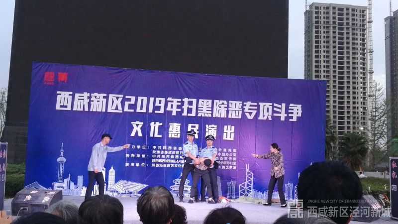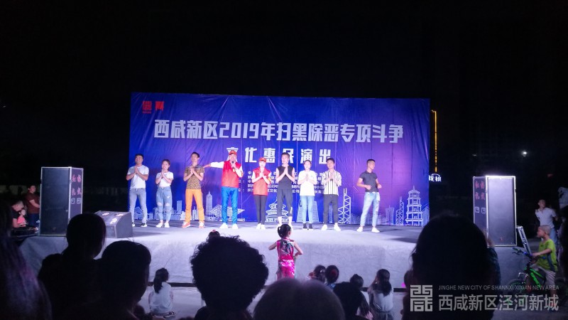 6月17日,由西咸新区党工委宣传部、西咸新区扫黑办主办,泾河新城扫黑办、党委宣传部(文广新局)协办的扫黑除恶专题文艺汇演在泾干公园广场上演。演出通过小品、快板等形式,为群众带来了一场多姿多彩、寓教于乐的扫黑除恶专项斗争文艺演出。