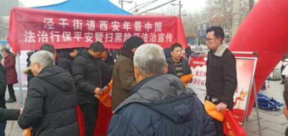 2月19日,泾河新城公安分局为向纵深推进辖区扫黑除恶专项斗争,大力营造全民动员、全民参与的良好氛围,切实提升群众安全感和满意度,积极参与到“西安年最中国,法治行保平安”————法治文化走基层暨深化扫黑除恶专项斗争宣传活动中。
