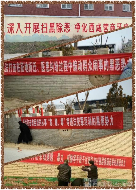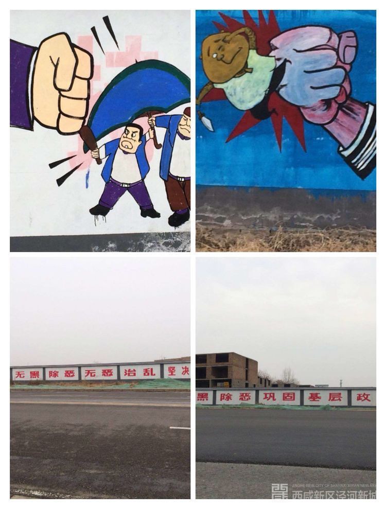 崇文镇深入贯彻落实西咸新区、泾河新城关于开展扫黑除恶专项斗争有关文件精神和工作要求,深入开展扫黑除恶专项斗争宣传工作,在主要路段以墙体漫画,墙体宣传标语等形式营造浓厚的宣传氛围。