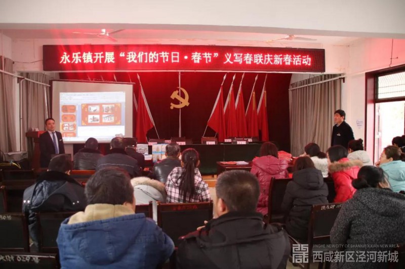 “千家万户曈曈日,总把新桃换旧符”。在新春佳节来临之际,1月16日下午,西咸新区泾河新城永乐镇组织开展“我们的节日·春节”义写春联庆新春活动,联合永乐镇南街信用合作社邀请泾阳县书法协会义写春联,为辖区干部群众送去新年祝福,传递党和政府的关怀。