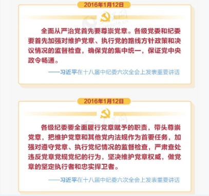 第五,强化监督,严肃问责。作为党内监督体系的重要组成部分,党的各级纪律检查机关是党内监督的专责机关。在党中央的领导下,纪检机关的专责监督与党委党组的全面监督、党的工作部门的职能监督,党的基层组织的日常监督,以及党员的民主监督,构成了一个完整而又相互衔接联动的监督体系。十八届六中全会审议通过的《中国共产党党内监督条例》对党的中央组织、党委(党组)、党的纪委、基层党组织和党员这四类监督主体的监督职责以及相应监督制度作出规定。该条例的颁布,对党内监督的指导思想、基本原则、监督主体、监督内容、监督对象、监督方式等重要问题作出规定,为新形势下强化党内监督提供了根本遵循。