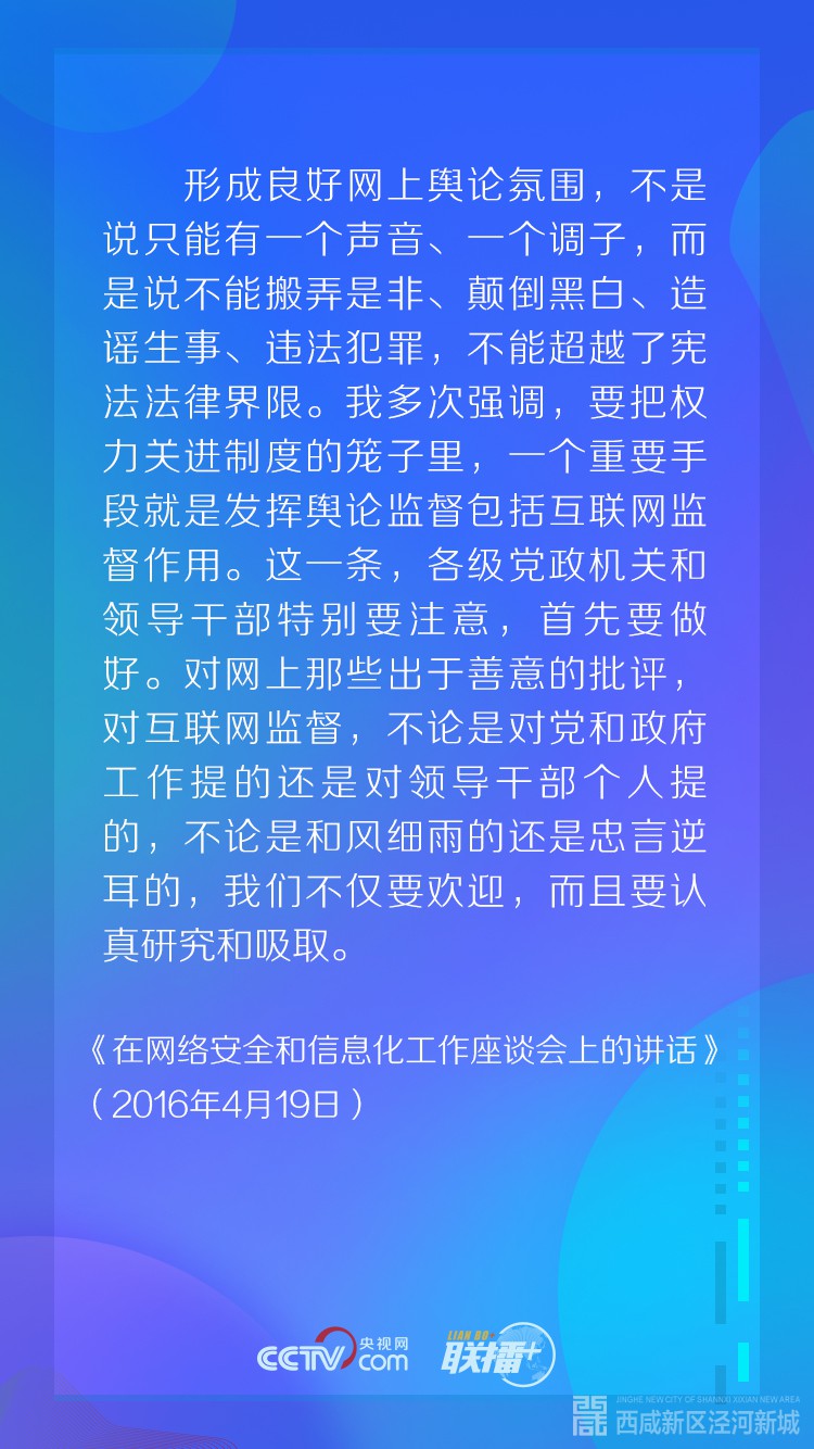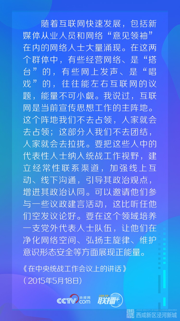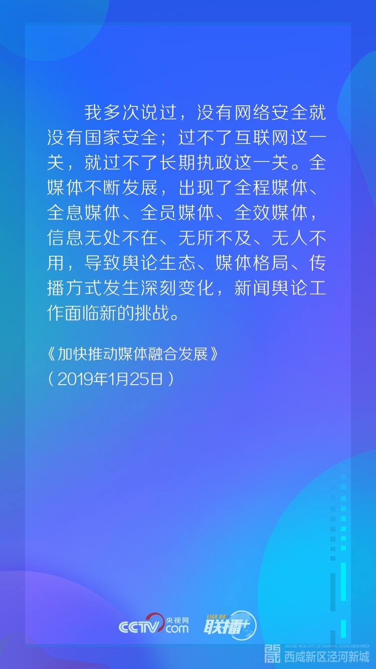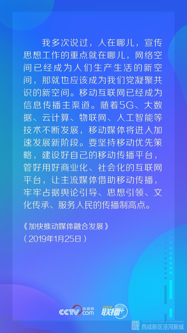“我多次说过,人在哪儿,宣传思想工作的重点就在哪儿,网络空间已经成为人们生产生活的新空间,那就也应该成为我们党凝聚共识的新空间。”
