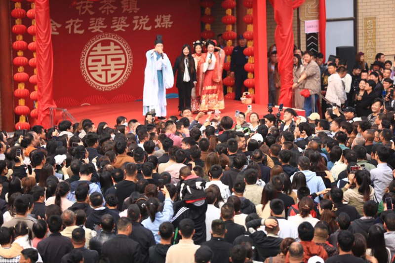 截至目前,全网“茯茶镇金花婆婆说媒”相关话题累计曝光量近4500万次,抖音平台浏览量超2亿次,景区账号每周增粉6千人。同时,活动还带动景区客流、营收实现双增长,3月30日至4月22日,茯茶镇景区营收839.76万,对比去年同期558.25万增长50.43%,清明节三天假期人流量超20万。