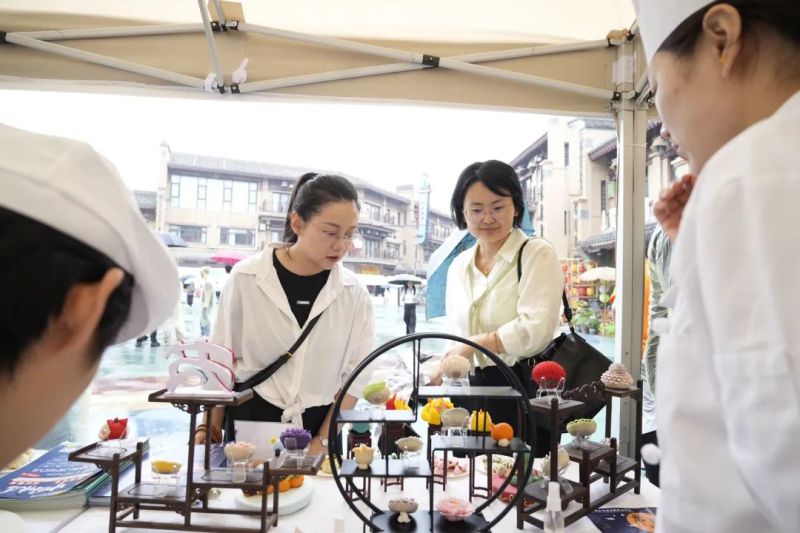 既有粽子、绿豆糕等现场制作体验,也有茯茶、坚果、鲜花、农特产等展销,还有院校、文旅景区、体育场馆、农产品推广及技能展示......伴随着消费季活动的启动,5月30日至6月2日期间,“端阳茯礼·农味集市”也在茯茶镇景区火热开集。展销大集设置“美食尝鲜区”“展示销售区”“互动体验区”“特色展示区”四个区域,云集了西咸新区及周边区县的特色乡村农产品、文旅产品、非遗产品,共搭建展位40个。