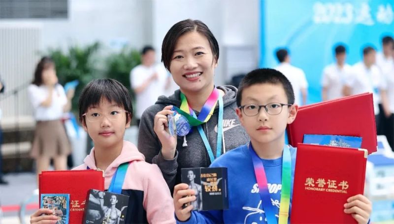 精彩的比赛落下帷幕,成绩优异者高举奖牌,兴奋和自豪溢于言表,而没有登上领奖台的选手,也都为他们自己在比赛中的表现感到骄傲。来自零距离健身俱乐部的李琛是一位大学老师,这次和10岁的女儿杜予涵一起来参加决赛,结果,母女二人均在比赛中有出色发挥,妈妈夺得成人组女子50米仰泳金牌、50米自由泳银牌,女儿摘得儿童组50米蝶泳金牌和50米自由泳铜牌。