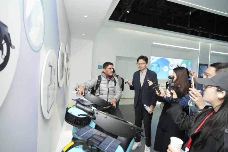 互动体验环节气氛热烈,外籍媒体代表扫码体验氢能助力单车。这款集成小型氢气发电机和储氢罐的“小蓝车”,续航里程可达100公里,有效解决传统电动车充电慢、续航短的痛点,目前已有百余辆在部分产业园区和景区投放。在质子汽车展区,搭载高性能氢燃料电池的新能源商用车获得关注,车辆续航超500公里,加氢仅需约15分钟,运营成本较传统燃油商用车降低30%以上,已投入物流运输、城市公交等场景。