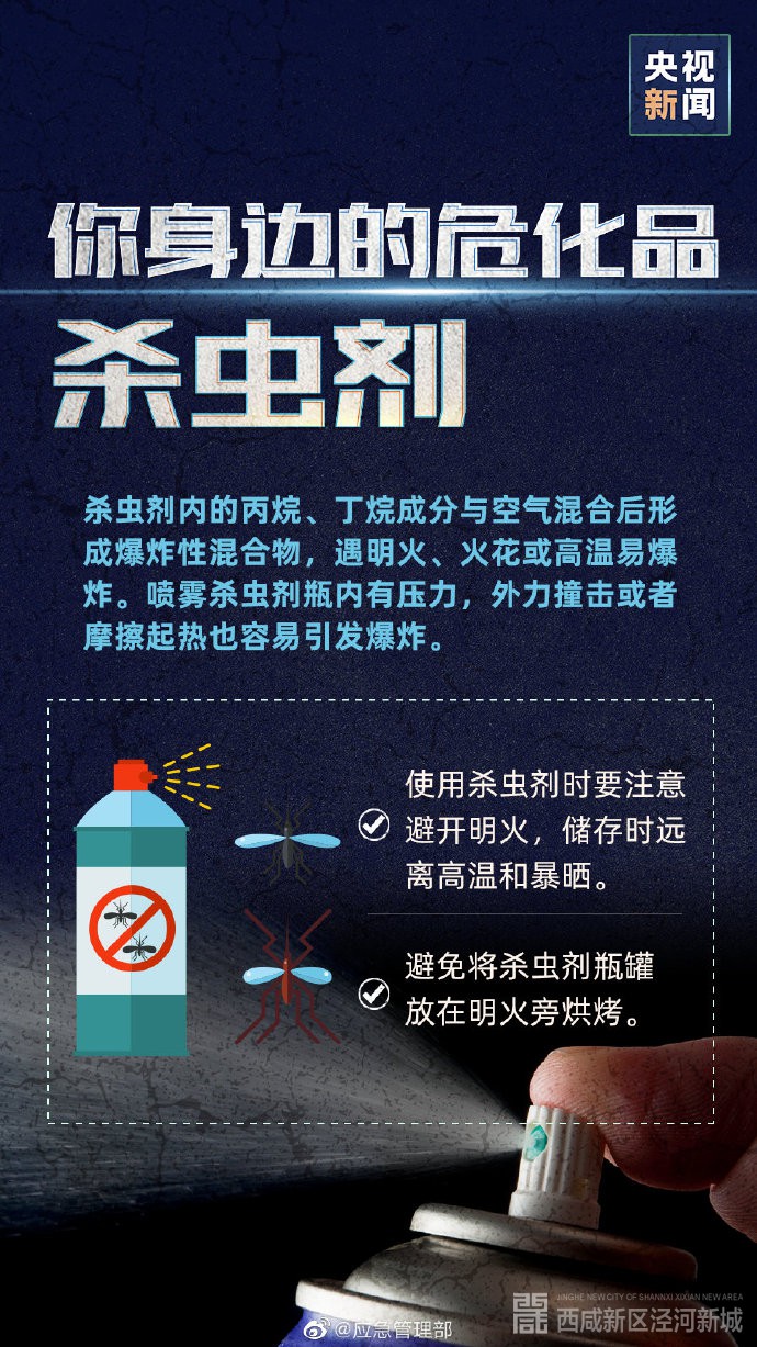 生活中我们都知道避开有明显标志的易燃易爆物品,但却很容易忽视身边随处可见的危化品。打火机、充电宝、杀虫剂……这些“隐藏”在我们身边的危化品千万要小心。