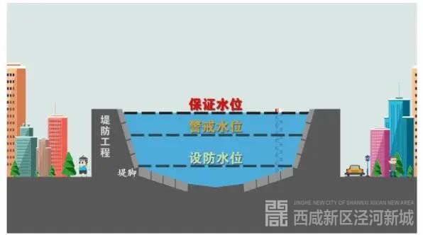 进入汛期后,江河水位上涨,根据水位高低及其对堤防安全的威胁程度,一般将防汛水位划分为三个等级,水位由低到高依次为:保证水位、警戒水位、设防水位。