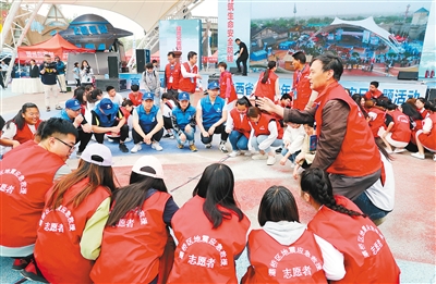 志愿者参与防灾救灾活动现场演练 记者 李安定 摄