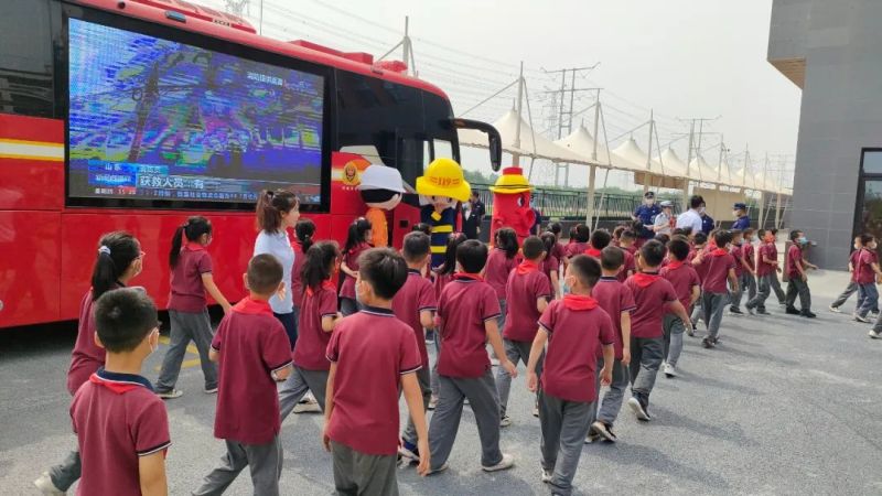 接着,在消防员的引领下,同学们依次参观了54米登高平台消防车、举高喷射消防车以及消防宣传车。在消防宣传车上,同学们真切感受了一把“高科技”,通过体验模拟家庭消防隐患排查、观看3D消防器材展示、操作绳结训练等,认识并学习了各种消防器材和基础的消防知识。