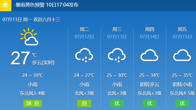具体到西安市,未来几天也将迎来清凉,西安市气象台7月11日9时40分降级发布高温橙色预警信号: