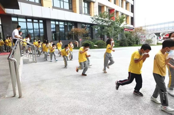 一阵急促的警报铃声响起,应急逃生疏散演练正式开始,在老师的引导下,同学们按照指定“逃生”路线,用手巾捂住口鼻,弯腰低姿快速撤离,到达安全地点后,各班班主任迅速清点人数并及时上报,整个消防疏散演练活动严肃认真、井然有序。