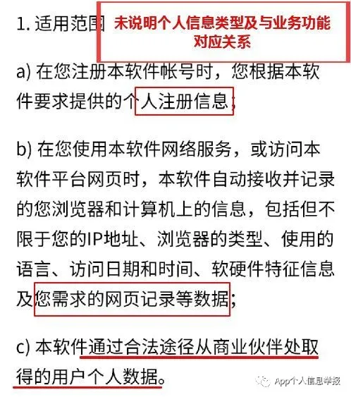 案例3:某在线教育App在收集个人信息方面未能明确规范其收集使用规则,隐私政策中提及的收集使用个人信息类型和其业务功能对应关系不清。