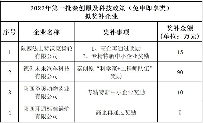 2022年第一批秦创原及科技政策(免申即享类)拟奖补企业名单