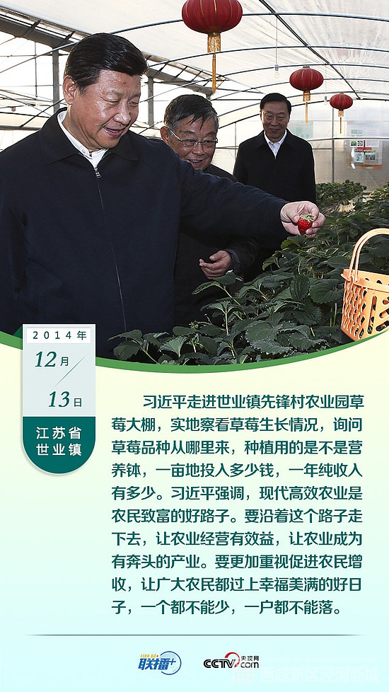 回望过往,习近平在多次地方考察时,都十分重视当地农产品的产业发展。河南的油茶、江西的蔬菜、江苏的草莓……他总是亲自到种植区实地考察,了解当地产业脱贫措施和成绩,关心当地群众的收入和生活状况。