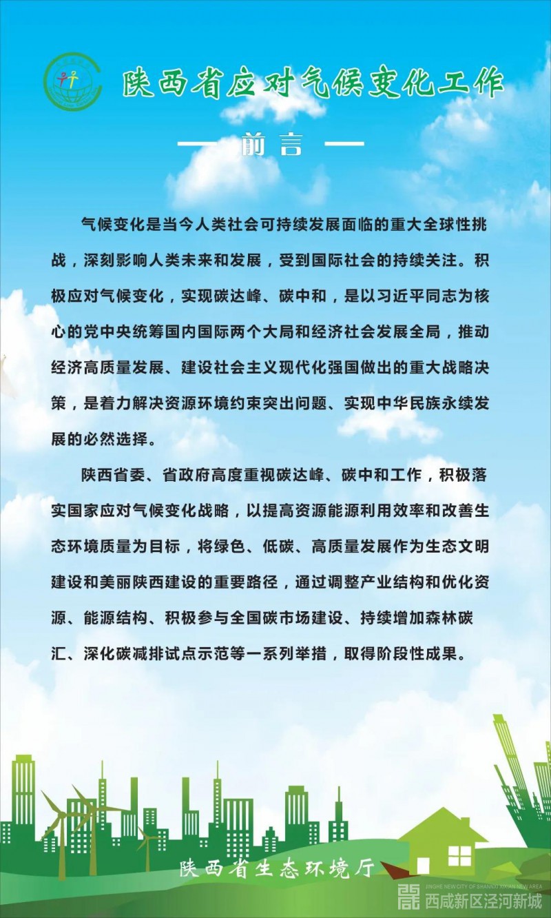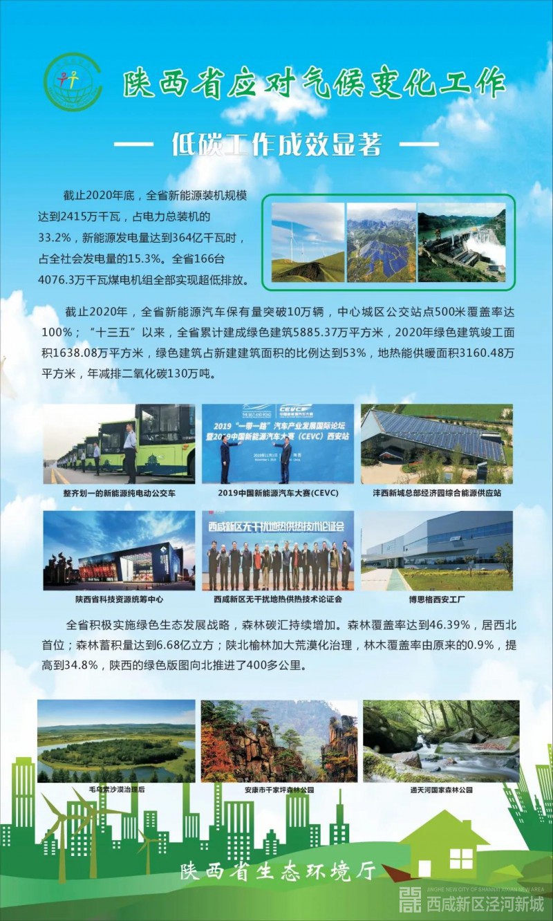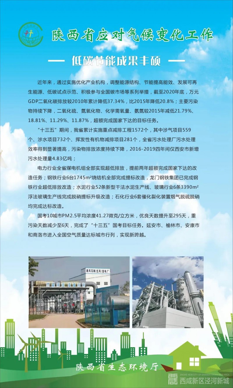 “十三五”期间,陕西作为全国低碳试点省,持续推进应对气候变化工作,通过不断优化能源结构、推进节能和提高能效等一系列措施,控制温室气体排放工作取得明显成效。