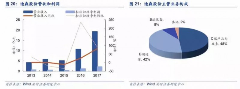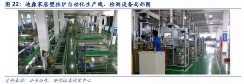 壁挂炉业务显著受益于京津冀煤改气。迪森家居旗下“小松鼠”品牌壁挂炉系列产品是行业内的知名品牌,技术+品质+售后等方面优势明显,市占率居行业前列,在煤改气市场上极具竞争力。迪森家居全套引进欧洲最先进的自动化生产流水线及检测设备,是中国第一条全自动壁挂炉生产线;目前拥有3条壁挂炉自动化生产线,年生产能力达70万台。受益于北方“煤改气”壁挂炉市场需求释放,公司2017年C端业务实现高速增长,壁挂炉销量及其增速均创出历史新高,出货量超过50万台,销量超过40万台,增速均超过200%。公司C端业务实现营业收入9.29亿元,同比增长160.2%,营收占比由33.65%提升至48.35%。