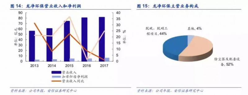 非电大气治理逐步启动,为大气治理企业带来新的业绩增长点。2017年,公司在钢铁、焦化、碳素、催化裂化、工业尾气治理、石化、有色、玻璃、生物质等非电领域实现突破,后续业务向非电领域延伸值得期待。2018年一季度新增订单中,约三分之二是非电领域的订单,公司非电领域的业绩值得期待。