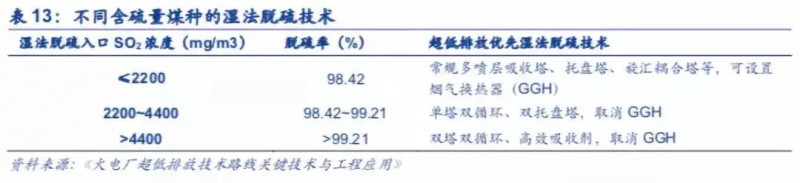 二氧化硫超低排放技术的选择与脱硫系统入口的SO2浓度直接相关,首先利用电厂煤炭的含硫量计算出不同煤种的SO2排放浓度,而后根据SO2的排放浓度限值得出脱硫率,选择合适的脱硫技术。