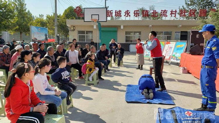 节目演出前,演职人员就西安市委文明办“致广大市民朋友的一封家书”和“车让人 人守规”进行了宣传和解读,并邀请泾河新城蓝天救援中心教员为北流村干部群众进行急救知识培训。