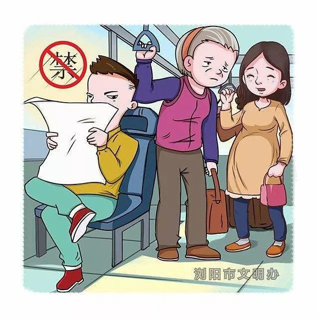 (7)乘坐公共交通工具应当自觉排队,先下后上,主动为老、幼、病、残、孕乘客让座,不在公共交通工具内饮食或者携带散发异味的物品;