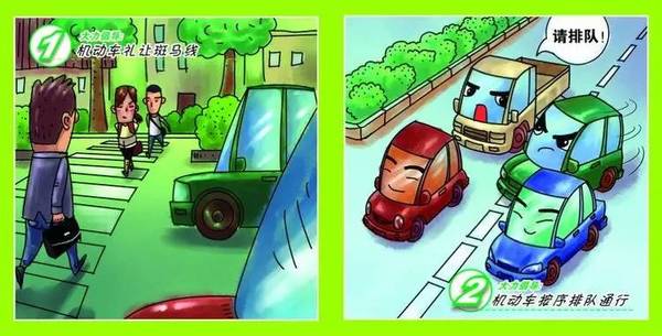 文明行车,不开"霸王车"、"斗气车",不随意变道或加塞,不争道抢行,人行横道前减速慢行,礼让行人。