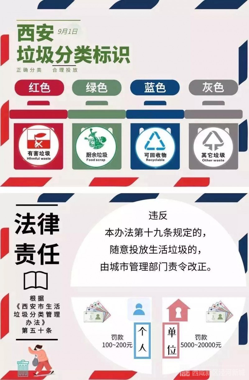 来喽来喽!它还是来啦!今天开始,西安开始实行垃圾分类啦!从今以后,垃圾分类正式走进我们的生活。我们每个人都应该认真学习,只有这样,我们的生活环境才会越来越好。