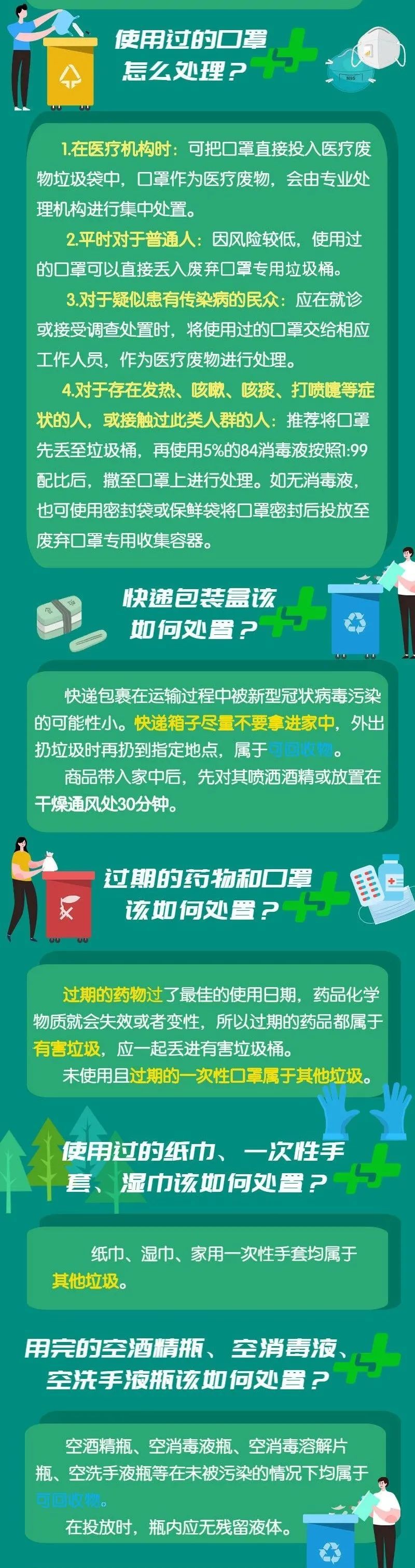 日常防护使用的医用口罩、手套、用完的空酒精瓶等,这些使用过的医疗废物该如何处理,怎么分类?带你一图读懂!