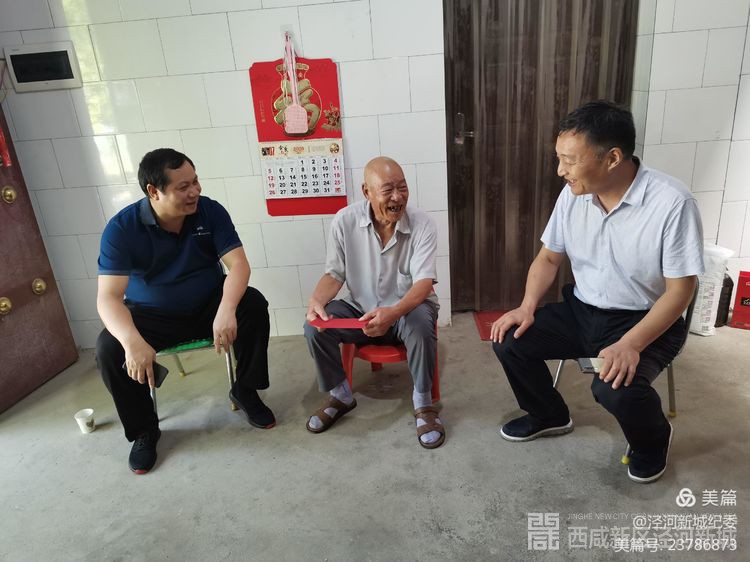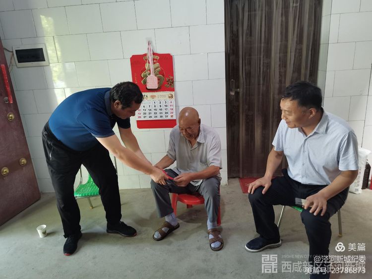 7月31日下午,泾河新城党委委员、纪委书记徐满一行来到高庄镇寿平村看望慰问退役军人代表晏天林和惠效中,为他们送上了米、面、油等生活物品及慰问金,切实落实好党委管委会优抚政策,把党的温暖传递到每一位退役军人的心坎上。