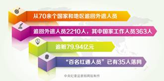 2014年以来,我国成立了中央反腐败协调小组国际追逃追赃工作办公室,先后开展“天网2015”“天网2016”专项行动。截至2016年9月,已从70余个国家和地区追回外逃人员2210人,其中国家工作人员363人,追赃79.94亿元;集中曝光国际刑警组织已发布红色通缉令的100名涉嫌犯罪外逃国家工作人员、重要腐败案件涉案人等人员,截至目前“百名红通人员”已有35人落网。