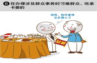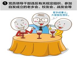 中央八项规定出台后,广大党员、干部从接待应酬中解脱出来,工作方式和生活方式发生明显转变,大多数干部觉得解脱了、身心舒畅,家庭也有亲切感了。整天喝得醉醺醺的,舒服吗?同时,也有少数干部感到有些不适应了,有的快下班了还没人邀约聚会就觉得心里有些空荡荡的。新修订的《中国共产党纪律处分条例》今年1月1日正式施行,其中对公务宴请、接待等作了明确规定。广大党员特别是党员领导干部一定要严格遵守《条例》,对以下6类饭局说“不”。