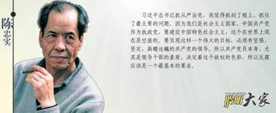 陈忠实:习近平总书记抓从严治党,我觉得抓到了根上、抓住了最主要的问题。因为我们是社会主义国家,中国共产党作为执政党,要建设中国特色社会主义,这个在世界上现在是空前的。要实现这样一个伟大的目标,必须有坚强、坚定、高瞻远瞩的共产党的领导。所以共产党员本身、尤其是领导干部的素质,决定着这个政权的色彩。所以反腐应该是一个最基本的要求。政治上的高瞻远瞩,工作作风上的实事求是和科学精神,都是各级领导干部最重要的素质。指望一个腐败的人把某一个地区干好,根本是不可能的,他只能毁坏这个世界。所以说,习近平总书记再一次强调抓从严治党、抓作风建设、抓纯洁队伍,是抓到了最根本。这是我的认识。