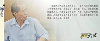 陈忠实:在我的意识里,正在进行的反腐败工作稳健而又有震慑性力度,可以说正当其时,大得党心人心。从已经揭露和惩治的腐败分子的构成来看,各个领域各个行政级别的握有权力的人都有,任谁都会感知腐败现象的严重。尤其是个别党的高级干部的腐败,让我震惊到几乎不可理喻的状态,自然也很直接地想到对党的危害了。