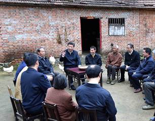 习近平在农家院落同村民们进行亲切交流。乡亲们畅谈生活变化,感谢党和政府关心帮扶,表示要通过勤劳努力,寻找更多致富门路。习近平指出,脱贫攻坚已进入啃硬骨头、攻坚拔寨的冲刺阶段,必须横下一条心来抓。要强化目标责任,坚持精准扶贫,认真落实每一个项目、每一项措施,全力做好脱贫攻坚工作,以行动兑现对人民的承诺。离开村里时,闻讯前来的村民们纷纷向总书记问好,为总书记送行。习近平同他们热情握手,祝乡亲们生活越来越好。
