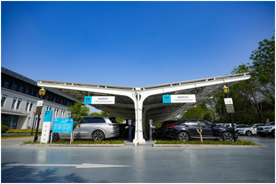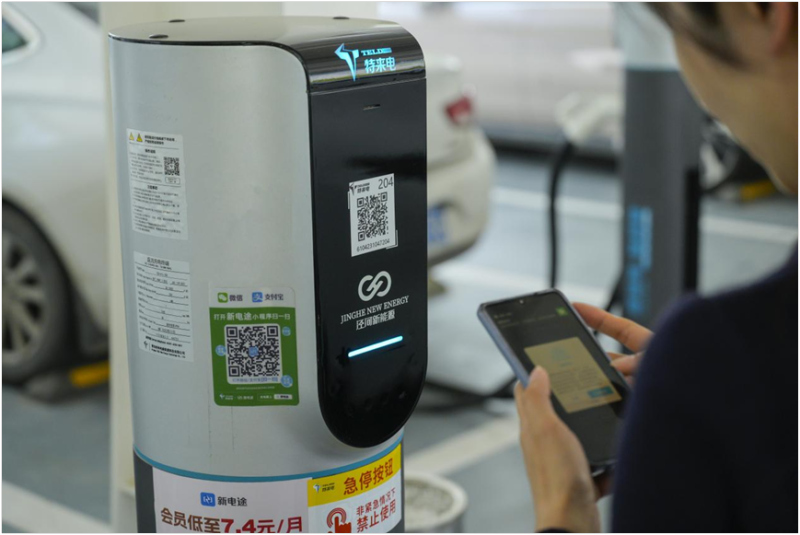 近日,新能源车主在泾河新城产业孵化中心充电站扫码充电。据悉,该充电站是陕西省首个集光伏、储能、充电、放电等多重功能于一体的智慧充电站。