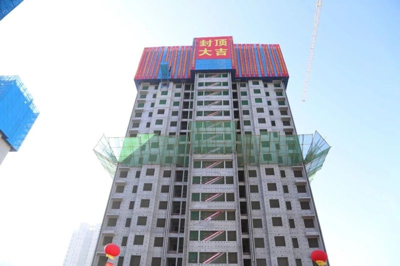 近日,泾河新城崇文佳苑十一期安置房项目首栋楼主体封顶。