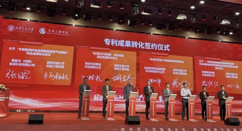 会上,秦氢元(陕西)能源科技有限公司总经理张昭还与西安交通大学机械工程学院教师杨柏松签署了关于“车载氢燃料电池用超高速空气压缩机”专利成果转化协议。