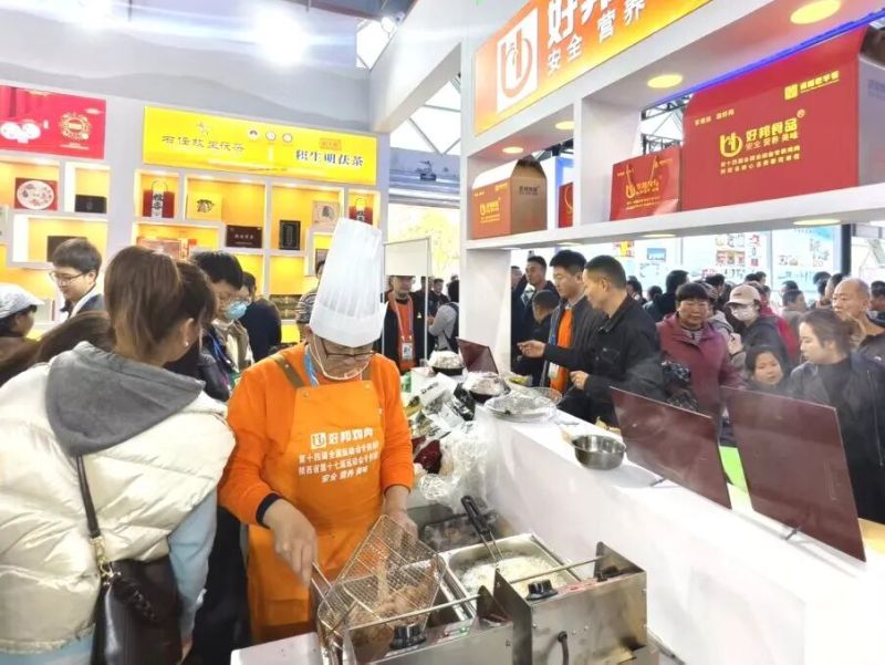 第三十二届中国杨凌农业高新科技成果博览会(以下简称“农高会”)正如火如荼进行中。在陕西特色现代农业展览馆(C馆)西咸新区展区,好邦鸡肉展台前人头攒动,雪花鸡柳等产品吸引大量采购商与市民驻足,工作人员忙得不亦乐乎,补货、介绍、打包连轴转,现场人气火爆。