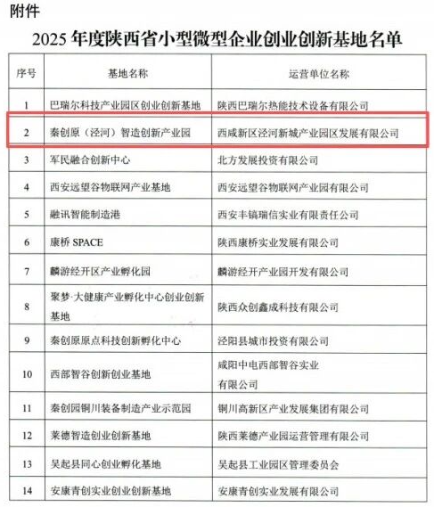 近日,陕西省工业和信息化厅公示了小型微型企业创业创新基地培育建设项目名单。秦创原(泾河)智造创新产业园顺利通过评审,被正式认定为“陕西省小型微型企业创业创新基地”。这是继获评市级基地后,园区在科技企业培育、成果转化与区域创新能级提升等方面的又一权威认可,彰显了泾河新城在打造优质创业创新生态方面的显著成效。