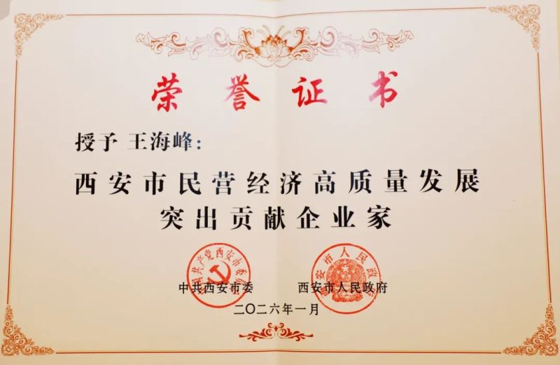 1月16日,在西安市民营经济高质量发展突出贡献奖表彰大会上,泾河新城入区企业陕西旭氢时代科技有限公司董事长王海峰荣获西安市民营经济高质量发展突出贡献企业家称号。