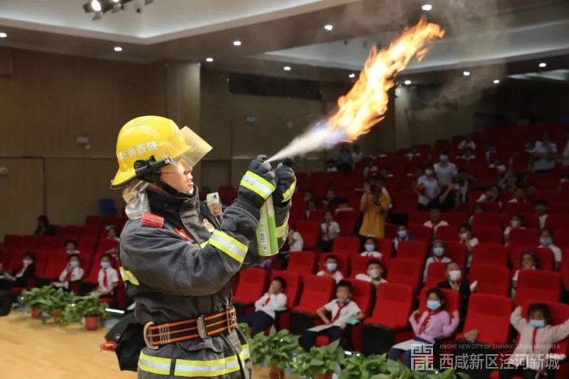 随后,消防救援大队在学校会议中心还举办了秋季校园消防安全知识培训,消防救援大队宣传员结合校园火灾特点,用通俗易懂的语言向师生们讲解了校园火灾的危险性,以及灭火器、防烟面罩、灭火毯等常见消防器材的使用方法,并重点讲解了“如何正确逃生?”“为什么使用酒精消毒要远离火源?”“怎样报火警?”等消防知识,同学们踊跃参与并积极回答问题。为了让学生们更直观的了解身边的火灾隐患,消防员先后使用花露水、医用酒精、杀虫剂等家中常见的可燃物进行燃烧演示,学生们全神贯注的观看,并不断为消防员的精彩表演拍手叫好,将现场气氛推向高潮。