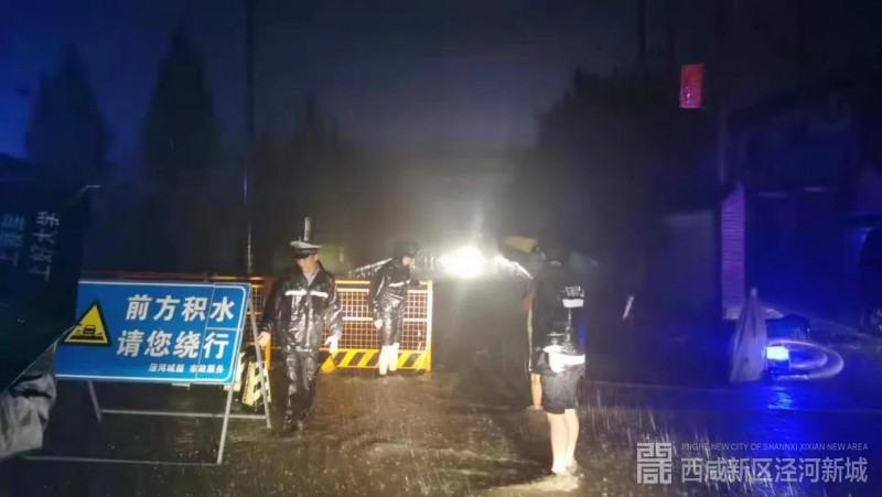 泾河新城公安分局根据辖区特点合理部署警力,提前做好防汛救援以及突发情况应急预案。在涵洞、立交桥等易积水路段发现积水立即进行封闭,疏导分流。并且加强车辆、各类设施准备,充分利用临时标志做好分流工作。和街办、村镇等联动联防,加强信息互通,做好配合,及时快速处置积水和险情。