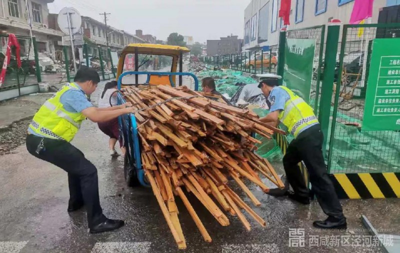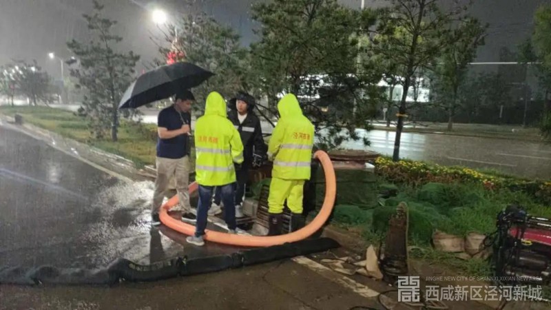 西咸新区泾河新城城管交通局面对汛情及时组织人员对辖区道路、涵洞等易积水点位进行巡查,并对积水点位进行抽排,全力保障辖区路面畅通。同时,在各重点路段加强执法力量部署,疏导行人和车辆,确保雨天城区主干道路行车平稳有序。降雨结束后,努力做好道路辅路的淤泥及落叶清理工作,恢复市容市貌干净整洁有序。