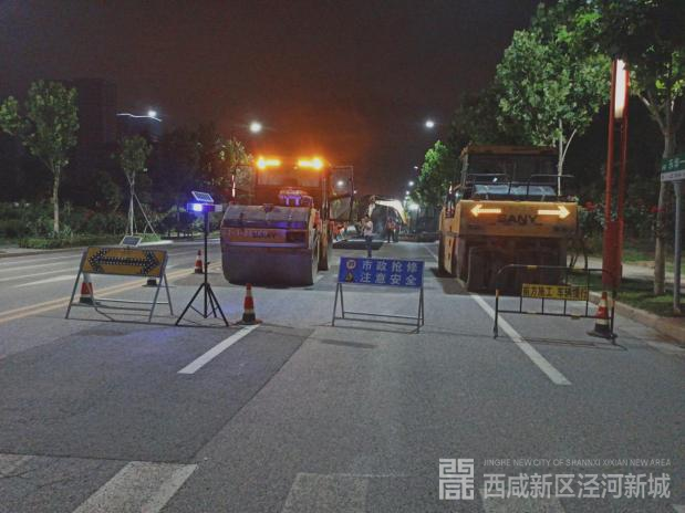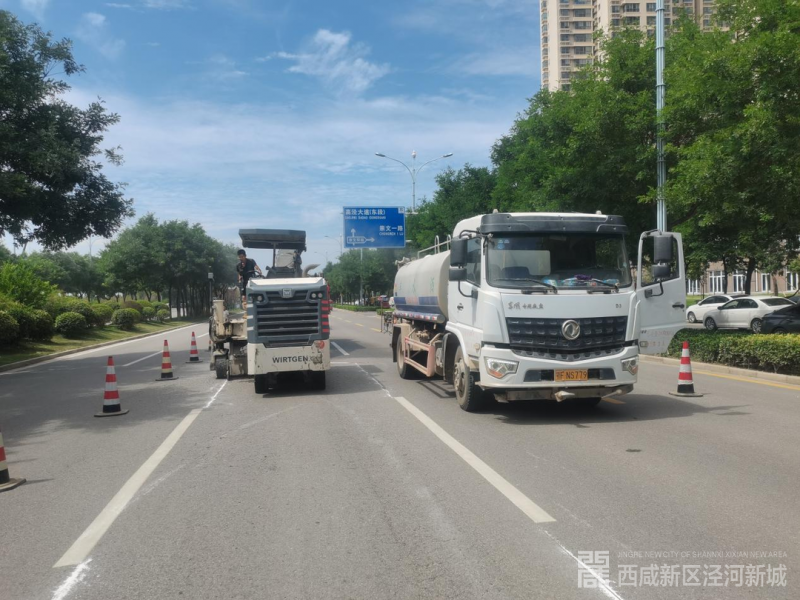 其中,针对正阳大道(崇文佳苑附近)东半幅主干道车道出现的车辙、沉陷等问题,泾河新城城市管理与交通运输局安排市政维护单位采用铣刨机、摊铺机等大型机械,利用周末时间完成路面铣刨、摊铺、碾压及标线施划,即时恢复车辆通行,确保人民群众出行便捷。