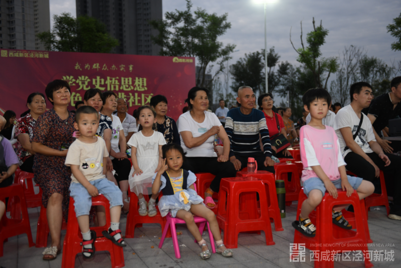 活动在泾河新城第三学校物业职工和崇文佳苑群众的舞蹈表演中走向高潮,红歌高唱,振奋人心,现场群众纷纷鼓掌叫好。启动仪式结束后,在瀛洲公园广场内播放电影《建国大业》,让大家重温了中国共产党建立的艰难过程,感受党从烽火岁月到小康生活的来之不易。现场群众纷纷表示,“要铭记历史,珍惜今天的幸福生活,加强邻里团结,继承和发扬革命精神。”